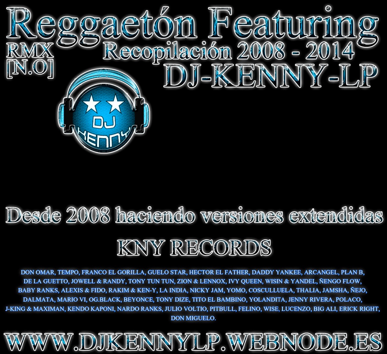 Este nuevo trabajo es un cd, con una serie de temas que han sido modificados por dj kenny lp, no son oficiales, simplemente desde 2008 que empece con mixtapes, remix y versiones extendidas, hasta este año 2014 que aun sigo con este proyecto, he decidido sacar un cd, con los mejores featuring que he hecho a lo largo de estos 7 años, son bastantes temas los que he modificado y personalizado a mi gusto, simpre sin animo de lucroy esperando que le guste a la gente que me sigue y sigue mi musica, como son muchos temas los que he hecho en estos años, decido subir solo los mejores, los estoy subiendo a youtube, en mi canal estan al final de la lista de reprduccion, en la lista de reproduccion